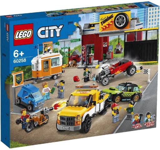 - Zestaw LEGO® City Warsztat tuningowy (60258) będzie idealnym prezentem dla miłośników samochodów, ponieważ zawiera kilka modeli, takich jak warsztat i szereg niezwykłych pojazdów, oraz ciekawe postacie zachęcające do pomysłowej, samodzielnej zabawy.