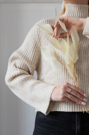 Naturalnie suszony i preparowany EUKALIPTUS IVORY w kolorze kości słoniowej. Dzięki procesowi preparowania liście rośliny zachowują niezmieniony kształt, połysk i świeży wygląd. Są w dalszym ciągu miękkie i nie łamią się. Z liści łatwo usunąć kurz. Eukaliptus jest trwały, dzięki czemu może latami służyć jako autentyczna dekoracja wnętrza.
