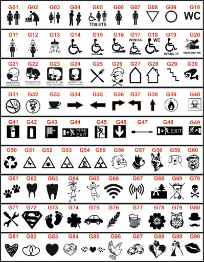 - Możliwość wyboru grafik/piktogramów, zamieszczonych we wzorniku poniżej (do 2).