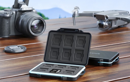 to odporne na kurz i wilgoć etui, które pozwoli Ci na przechowywanie kart microSD oraz SD nawet w ekstremalnych warunkach. Umieścisz w niej po 12 kart SD i microSD jednocześnie (w sumie 24 karty). Karabińczyk znajdujący się w zestawie sprawi, że wygodnie zabezpieczysz etui w torbie, mając pewność, że nie wypadnie podczas transportu. Stanowi idealny prezent dla miłośników fotografii lub grafiki. Powłoka z tworzywa ABS charakteryzuje się nie tylko wytrzymałością, ale i eleganckim wykonaniem. Wypełnienie z pianki EVA ochroni karty przed uszkodzeniem, a silikonowe zabezpieczenie zamortyzuje wstrząsy, jednocześnie asekurując przed kroplami wody lub kurzem. Etui jest zamykane na solidną klamrę, która uniemożliwia wypadnięcie zawartości.