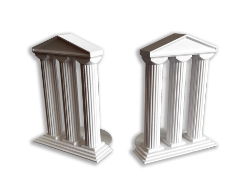 Są to dwie trójwymiarowe podpórki do książek przestawiające greckie świątynie w kolorze białym.