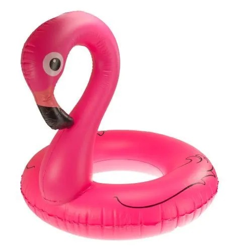 Kolorowe koło dmuchane w kształcie flaminga, wykonane z wysokiej jakości plastiku PCV, gwarantującego wytrzymałość.