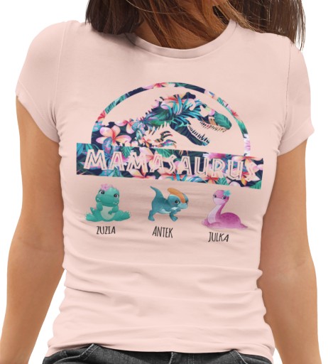 PERSONALIZOWANA KOSZULKA MAMASAURUS Z IMIONAMI DZIECI z nadrukiem w technologii DTG lub DTF