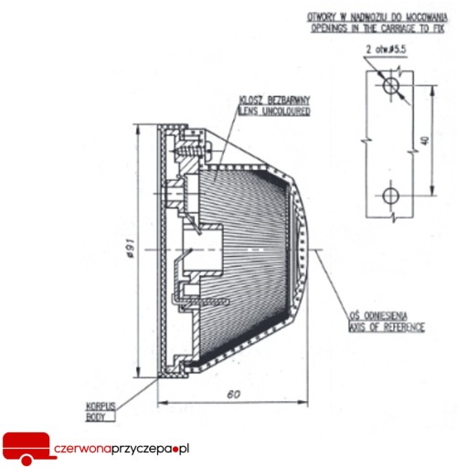 - dwa otwory montażowe fi5,5 w rozstawie 40 mm