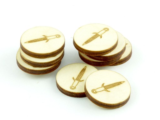 MONETA MONETY DREWNIANE - MIECZ 22 MM (10 SZTUK) DO GIER RPG