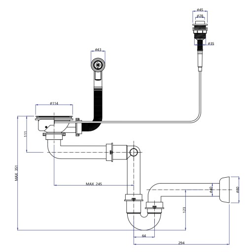 СИФОН ДЛЯ КУХОННОЙ МОЙКИ, АВТОМАТИЧЕСКИЙ, ЧЕРНЫЙ