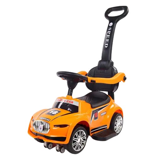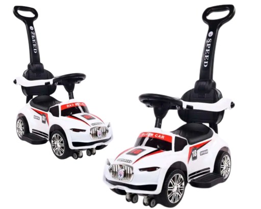 Sportowe autko może posłużyć dziecku jako pierwszy pojazd do jeżdżenia z prawdziwą kierownicą, jak również pchacz z otwieranym schowkiem na zabawki (mały bagażnik)