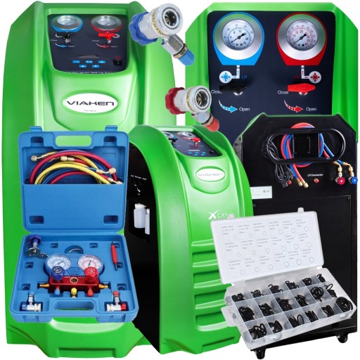 Fabrycznie nowa stacja obsługi samochodowej klimatyzacji VIAKEN X520 przeznaczona do precyzyjnego i skutecznego serwisowania klimatyzacji samochodów osobowych, ciężarowych, maszynach budowlanych i rolniczych, Idealny sprzęt dla serwisów, warsztatów i stacji obsługi pojazdów, posiada certyfikat CE. Zaawansowane filtry odkwaszająco - osuszające użyte w urządzeniu umożliwiają dokładną regenerację odzyskanego czynnika chłodniczego oraz ponowne jego użycie równocześnie z odseparowaniem zużytego oleju.