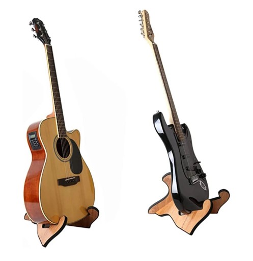 Oryginalny, drewniany statyw do gitary. Miękkie nakładki ochraniają powierzchnię przed zarysowaniami oraz zwiększają stabilność instrumentu. Możliwość złożenia i spakowania do pokrowca.