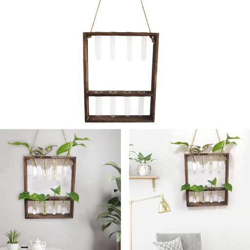 Zastosowania: Prosty i elegancki propagator do probówek pasuje do każdego pomieszczenia w stylu Dwupoziomowy drewniany stojak z 8 tubami maksymalizuje przestrzeń i mieści więcej roślin
