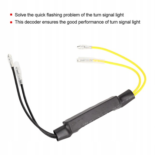 - Niektóre motocykle będą miały migające światło, gdy są zainstalowane ze światłami LED, lub światło nie będzie migać, a nowo zainstalowane światła LED zgłoszą błąd. Aby rozwiązać ten problem, produkt można zainstalować, aby rozwiązać miganie kierunkowskazu i alarm awarii światła LED. Nadaje się do użytku motocyklowego.