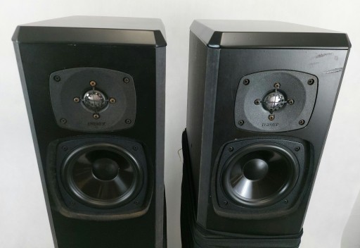 "Każda kolumna wyposażona jest w 2 przetworniki szerokopasmowe o średnicy 14 cm i 2 wysokotonowe średnicy 2,5cm z ultra lekkimi aluminiowymi kopułkami zawieszonymi na tekstylnym ringu. W sumie 8 przetworników w zestawie.