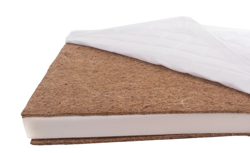 Dwustronny materac z wkładami mat kokosowych z możliwością obracania. Mata kokosowa/Pianka PUR/Mata kokosowa. Materac dla dziecka z naturalną łuską kokosową oraz pianką PUR - jest to tani a zarazem zdrowy materac pasujący do łóżeczek dziecięcych o wymiarach 120x60 cm.