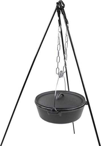 Trójnóg jest niezbędny do przygotowania ciepłych posiłków i napojów w warunkach polowych. Umożliwia sprawne ustawienie naczynia nad paleniskiem lub innym źródłem ciepła (kuchenką, palnikiem, paleniskiem itp. ).