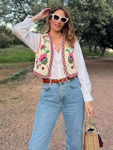 KAMIZELKA HAFTOWANA KWIATY BOHO ETNO M