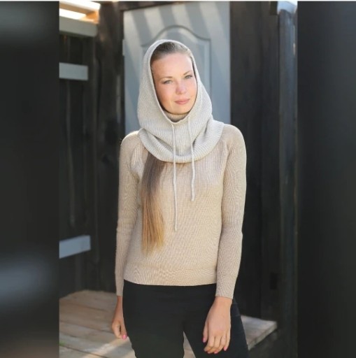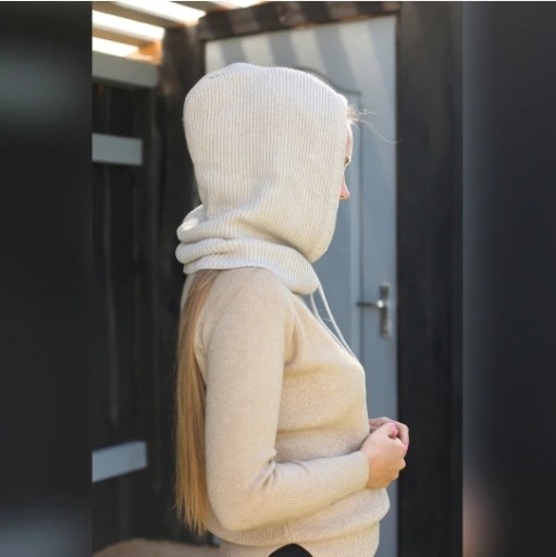 ТРИКОТАЖНЫЙ КАПЮШОН, КАШЕМИР ШЕРСТЬ, ЧЕРНЫЙ