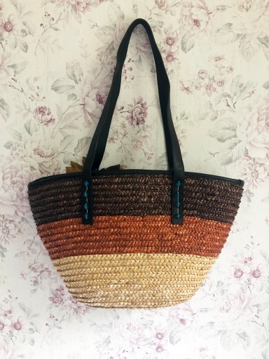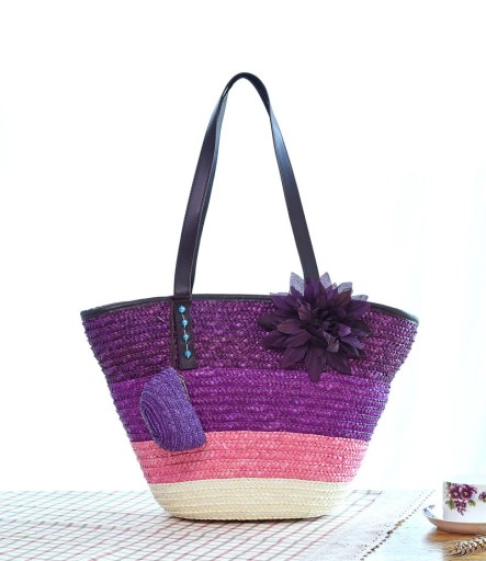 TOREBKA SŁOMKOWA KOSZYK PLAŻOWY SASZETKA FIOLETOWY