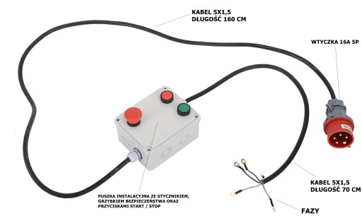 Jesteśmy producentem w/w wyłączników. Na życzenie możemy wykonać wyłącznik z wtyczką 32A 5p oraz innym stycznikiem, do różnych mocy silników.