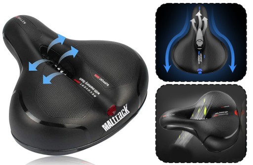 Wygodne siodełko rowerowe MalTrack jest wyściełane grubą, gęstą pianką z pamięcią kształtu o dużej gęstości. Odporny materiał na zewnątrz siodełka chroni przed pęknięciami, wybojami i falami mrozu. Trwałe, wygodne, elastyczne i bardzo miękkie, lepiej chronią pośladki! Nasz system amortyzacji, pochłania wstrząsy i drgania, redukując przy tym dyskomfort spowodowany nierównościami terenu.