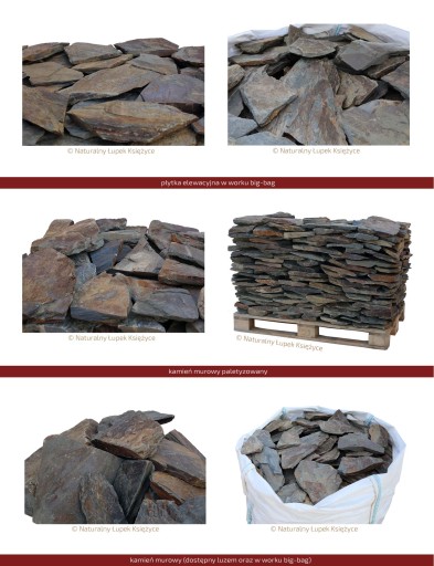 - Kamień murowy płytowy o grubości od 1 do 6 cm (wydajność około 15 metrów kw.) - cena: 690 zł (na palecie)