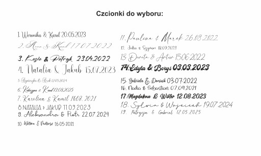 3. Czcionkę, którą ma być wykonany napis