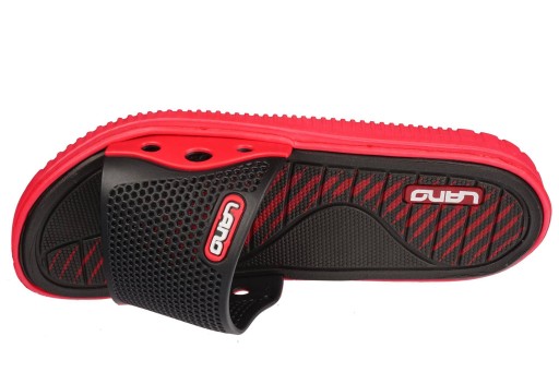 Klapki basenowe Młodzieżowe firmy Lano występują w kolorystyce czerwonej z dopełnieniem w kolorze czarnym. Wykonane zostały w klasycznym designie z wysokiej jakości materiałów. Model jest wodoodporny, jest bardzo wytrzymały i odporny na ścieranie. Klapki są lekkie, elastyczne, przyjazne i komfortowe dla skóry dzięki piankowej podeszwie która jest miękka i dopasowuje się do stopy. Idealnie sprawdzą się na wyjazdy wakacyjne, basen czy do ogrodu. Oczywiście do codziennego użytku w domu także są idealne.