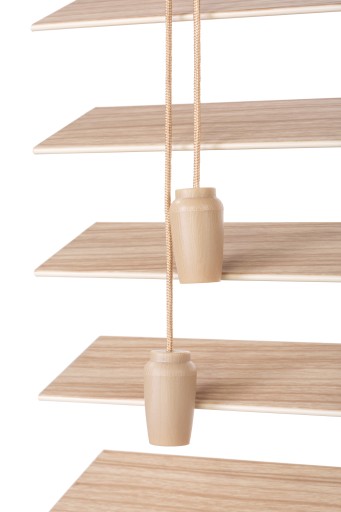 - Sterowanie za pomocą sznurków (prawa strona – podnoszenie i opuszczanie żaluzji, lewa strona – obracanie lamelek)