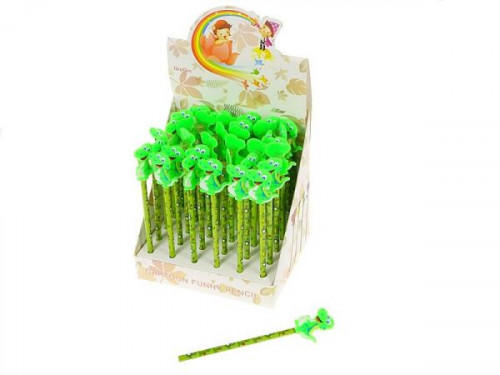 Ołówek z nakładką w postaci dinozaura od firmy ADAR. Nakładka została wykonana z elastycznego silikonu i przedstawia uśmiechające się zwierzątko. Ołówek został pokryty teksturą, która zawiera różne stworki (smok i smocze dziecko). Jest łatwy w temperowaniu i został wyposażony w wytrzymały grafit.