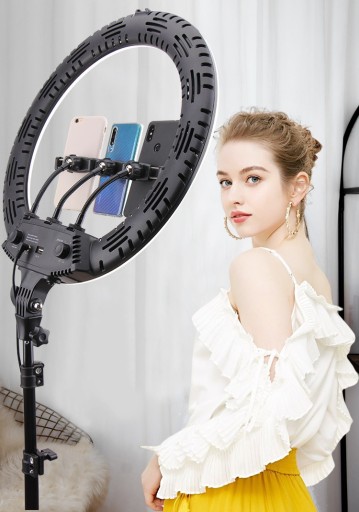 Pierścieniowa lampa LED skierowana głównie do osób nagrywających video i fotografujących przy użyciu smartfonów. Trzy Wygodne elastyczne uchwyty umożliwiają montaż smartfona w pożądanej pozycji. Dwa rodzaje diod pozwalają na regulację temperatury barwowej światła w przedziale 2700 K - 6500 K. Panel lampy składa się z diod LED o wysokim współczynniku reprodukcji barw.