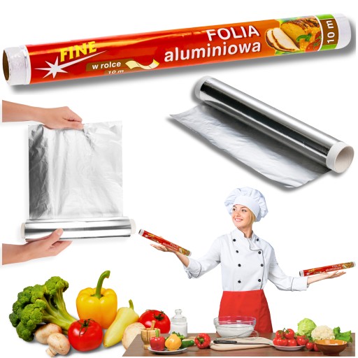 Fine Folia aluminiowa 10 m jest doskonałym materiałem do pakowania żywności, ponieważ nie przepuszcza powietrza, światła i wody. Oznacza to, że produkty spożywcze przechowywane w folii aluminiowej dłużej zachowują nienaruszony smak i aromat oraz nie przytłaczają innych zapachów w lodówce. Pomaga przy smażeniu potraw w piekarniku oraz podczas grilowania.