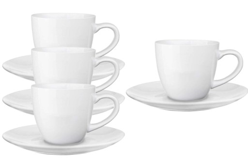 Filiżanka ze spodkiem wykonana z białej ceramiki idealnie wkomponuje się do większości zastawy stołowej, jej klasyczny kształt pasuje zarówno do nowoczesnych jak i tradycyjnych pomieszczeń.