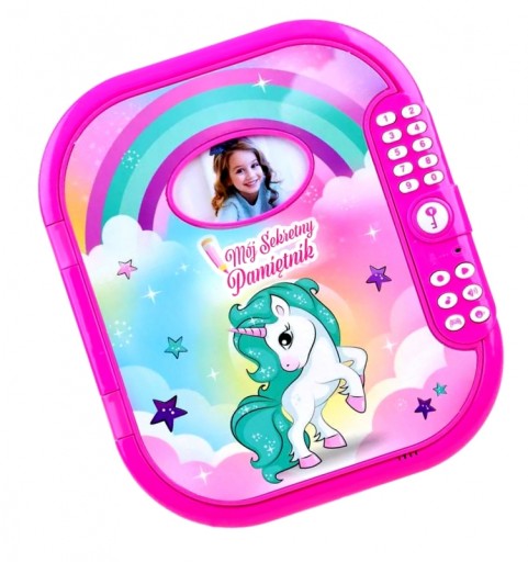 Na okładce notesu znajduje się specjalne miejsce, w którym można umieścić swoje zdjęcie, a za pomocą cyfr umieszczonych obok fotografii można ustalić hasło do pamiętnika oraz odtwarzać nagrania głosowe i wesołe melodie.