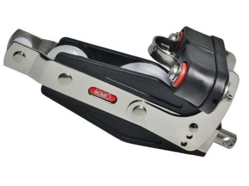 Bloczek wiolinowy z krętlikiem, knagą od góry, kipą i zaczepem. Wykonany z wysokiej jakości tworzywa acetalowego odpornego na deformacje mechaniczne oraz polerowanej stali kwasoodpornej 316L.