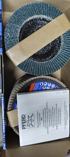 Wykonanie: z listkami z korundem cyrkonowym (Z), ze spoiwem z żywicy syntetycznej, połączona trwale z talerzem z włókna szklanego. Dzięki temu osiągana jest wysoką wydajność cięcia i długa żywotność. Bez dodatku wypełniaczy zawierających związki żelaza, chloru i siarki. Otwór znormalizowany 22,23 mm.