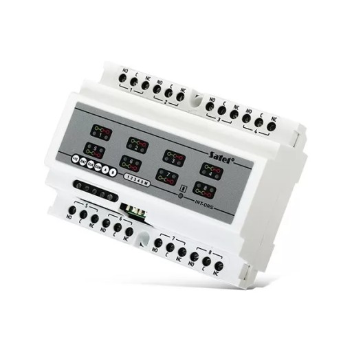 Moduł INT-ORS umożliwia rozbudowę systemów INTEGRA/VERSA/PERFECTA i ACCO NET o 8 programowalnych wyjść przekaźnikowych. Przeznaczony jest do realizacji bezpośredniego sterowania urządzeniami 230 V za pomocą central alarmowych z rodzin: INTEGRA, INTEGRA Plus, VERSA, VERSA Plus, PERFECTA. Moduł ten jest także świetnym rozwiązaniem w przypadku wykorzystania możliwości oferowanych przez te centrale do tworzenia systemu automatyki. Urządzenie to może współpracować również z centralami kontroli dostępu ACCO-NT. INT-ORS przeznaczony jest do montażu na standardowej szynie DIN 35 mm.