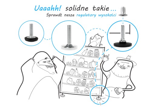Regulator poziomu, stopka meblowa do poziomowania mebli. Regulator przeznaczony jest do poziomowania mebli lub innych konstrukcji. Regulator sprzedawany wraz z mufą wbijaną z kołnierzem. Regulator posiada tworzywową podstawę zapobiegającą przed porysowaniem powierzchni. Stopka wytrzymuje nacisk 2500 KG na jedną sztukę.