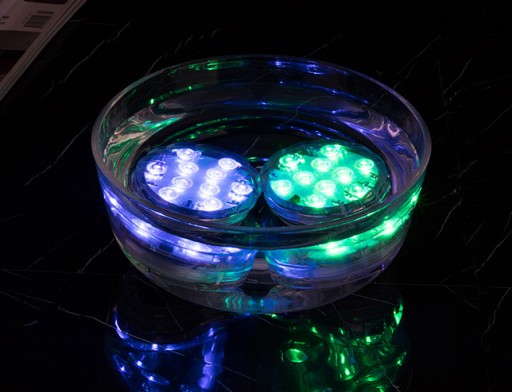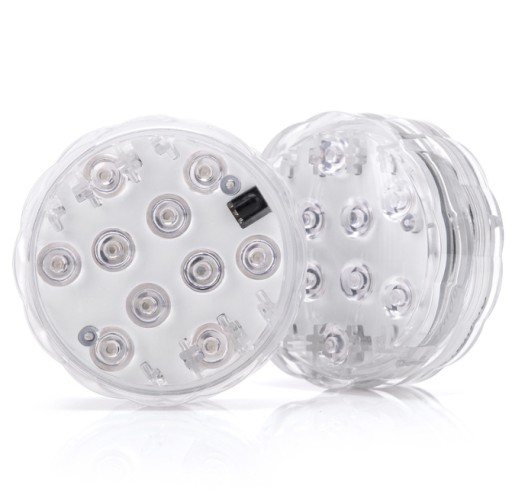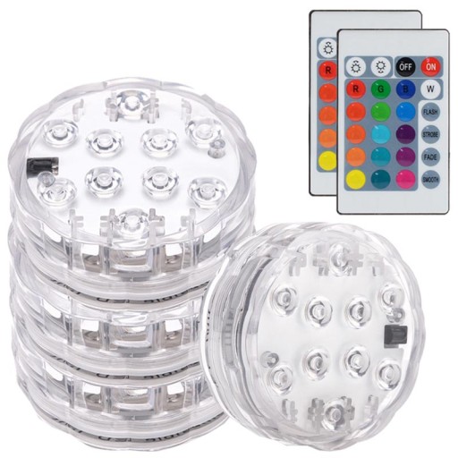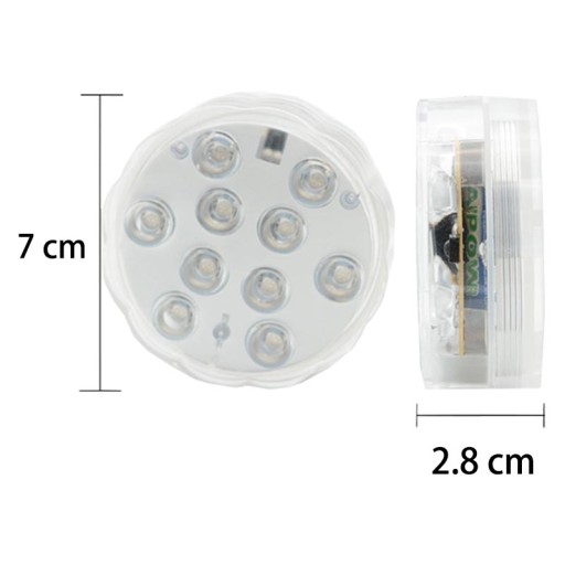 Zanurzalne światło LED wielokrotnego użytku, super jasne 10 wbudowanych diod LED, wodoodporne i bezprzewodowe, idealne na imprezy lub do dekoracji domu, takie jak oświetlenie wazonów, misek lub innych pojemników wypełnionych wodą. -Może zmienić nudną miskę w piękny i ekscytujący element centralny, często używany do projektowania wydarzeń.