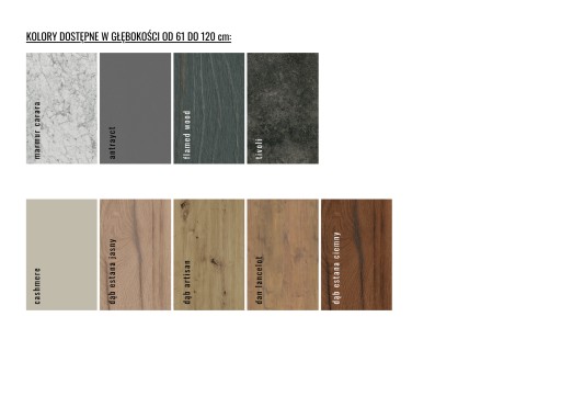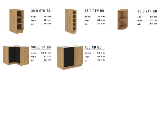 Meble kuchenne OSLO to kolekcja podążająca za najnowszymi trendami. Fronty matowe w czarnym wykończeniu z korpusem o teksturze drewna z charakterystycznymi słojami. Ponad 30 komponentów z serii, w tym szafki dolne z szufladami, szafki otwarte z półkami, kominy gospodarcze do zabudowy piekarnika czy różnego typu szafki wiszące. Wszystko po to by stworzyć niepowtarzalny klimat aranżacji i sprostać najwyższym wymaganiom.