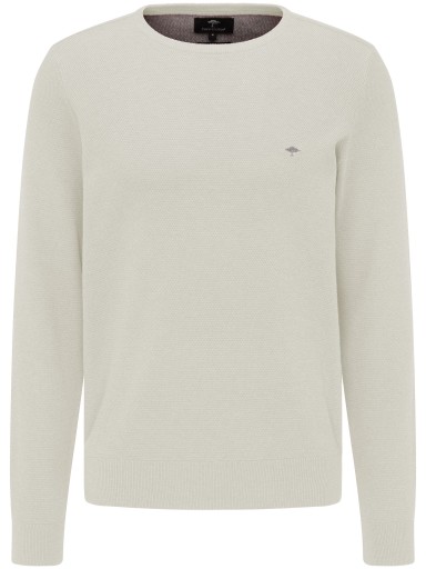 Bawełniany sweter męski o luźnym kroju w kolorze białego płótna firmy FYNCH-HATTON. Wykonany z najwyższej jakości czystej bawełny . Dzianina o strukturalnej fakturze, rękawy oraz dół zakończone ściągaczami. Na lewej piersi wyszyte logo producenta.