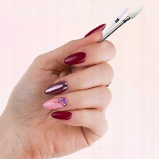 - Frez ceramiczny do obrabiania skórek oraz korekty tunelu przy uzupełnianiu żelowym (frezowanie od spodu).