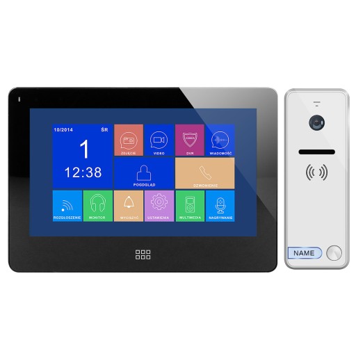 Przykładowy zestaw VIBELL: Zestaw wideodomofonowy FELIS MEMO, nie wymaga słuchawki. Składa się z kolorowego, płaskiego monitora LCD 7" obsługiwanego dotykowo oraz wyjątkowo odpornej wideo kasety z kamerą szerokokątną. Posiada funkcjonalne i czytelne menu OSD, dzięki któremu błyskawicznie skonfigurujemy ustawienia parametrów monitora. Zestaw posiada dodatkowo gniazdo na karty SD oraz DVR. Zestaw posiada funkcję sterowania bramą oraz otwierania elektrozaczepu zasilanego bezpośrednio z wideo kasety. Kolor czarny.