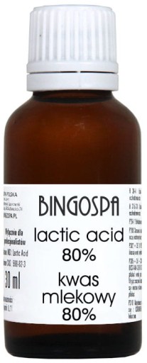 80% kwas mlekowy czyli kwas alfa-hydroksypropionowy, zwany także kwasem mlecznym - otrzymywany jest dzięki fermentacji cukru przez bakterie kwasu mlekowego (Lactobacillus).