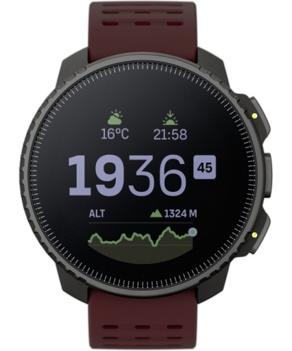 Zegarek sportowy Suunto Vertical Black Ruby SS050865000 to propozycja zaawansowanego zegarka sportowego. Z nim urozmaicisz każdy trening, a pomogą Ci w tym praktyczne funkcje. Zegarek sportowy Suunto Vertical Black Ruby wyróżnia się wysoką jakością wykonania - koperta, której podstawą jest Kompozyt i Silikonowy pasek zapewnią komfort noszenia w każdych warunkach. Tarczę chroni odporne szkiełko Szafirowe. Urządzenie do działania napędza mechanizm Smartwatch. Atutem modelu jest także jego wodoszczelność - została ustanowiona na poziomie 100 metrów.