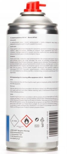 Dzięki użytej mieszance gazów, sprężony gaz nie pozostawia żadnych śladów po czyszczeniu a pojemność 400ml starcza na kilkukrotne czyszczenie podzespołów elektronicznych.