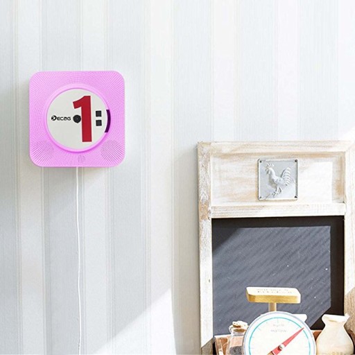Odtwarzacz CD do montażu na ścianie Przenośny domowy zestaw audio Bluetooth z pilotem Radio FM Wbudowany głośnik HiFi MP3 różowy