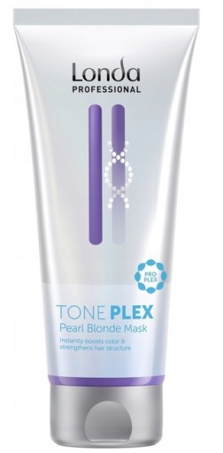 Maska Pearl Blonde z fioletowymi pigmentami i technologią PROPLEX odświeża chłodne odcienie blondu od 7, przez średni blond, do 10, najjaśniejszego odcienia blondu, jednocześnie rekonstruując wiązania wewnątrz włosów.