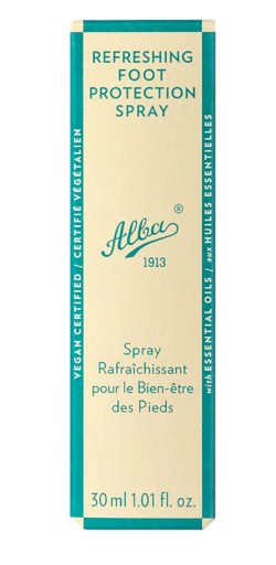 Spray Alba to ochronny preparat polecany do pielęgnacji skóry i paznokci stóp, zwłaszcza w przypadku wystąpienia zakażeń pałeczką ropy błękitnej (Pseudomonas aeruginosa) oraz w przypadku grzybicy. Jest to preparat zapewniający ochronę przeciwgrzybiczą i przeciwbakteryjną. Działa odświeżająco, dodatkowo pomaga przy problemach z nadpotliwością.