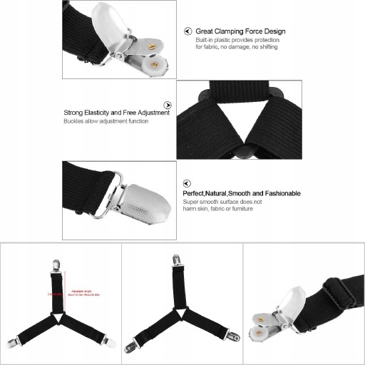 Łatwe zakładanie i utrzymywanie prześcieradeł na miejscu, koniec z mocowaniem prześcieradeł, regulowana długość umożliwia pożądane napięcie.