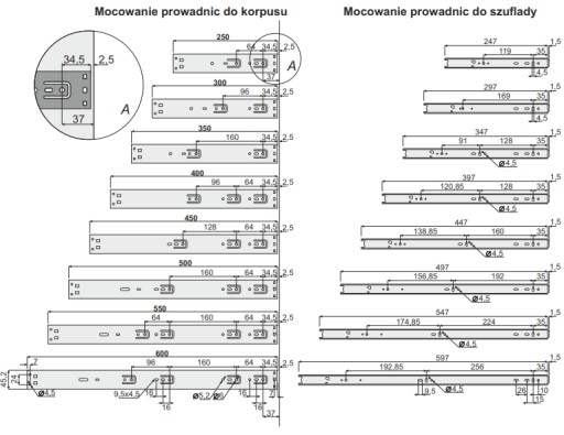 - Przeznaczenie: do szuflad drewnianych lub z płyty wiórowej