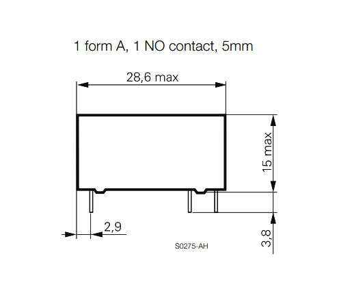 Kolejne grafiki prezentują wymiary oraz wyprowadzenia przekaźnika.
